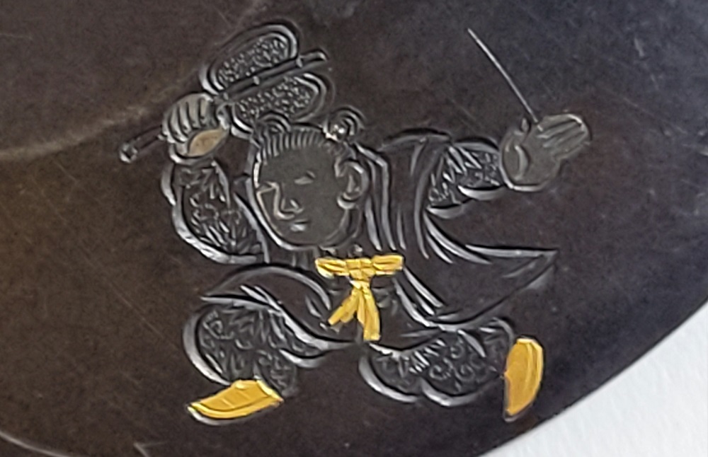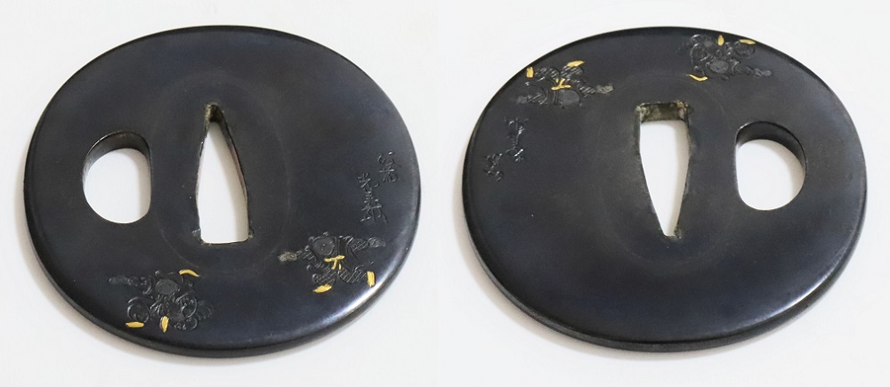 | Material | Shakudo with details in gold and silver |