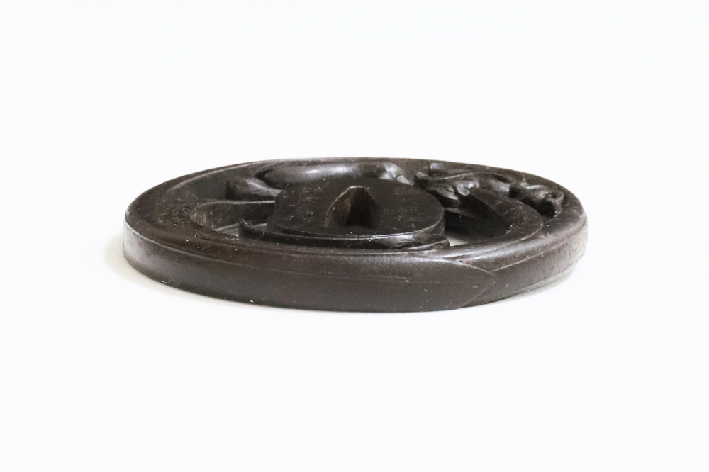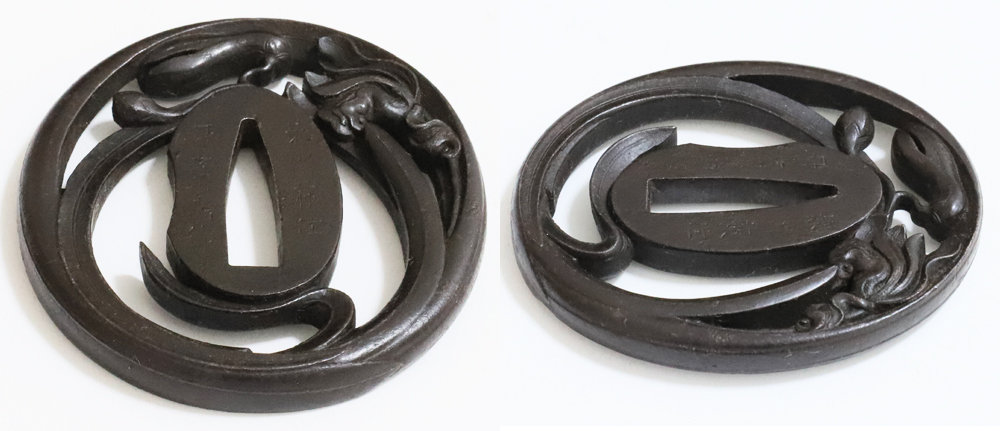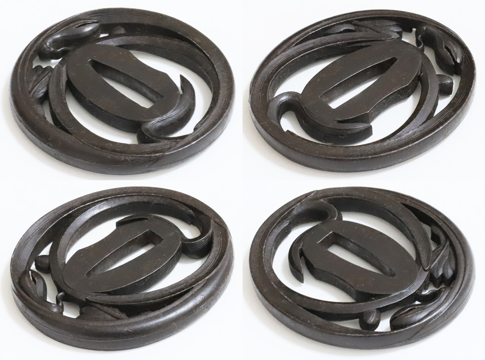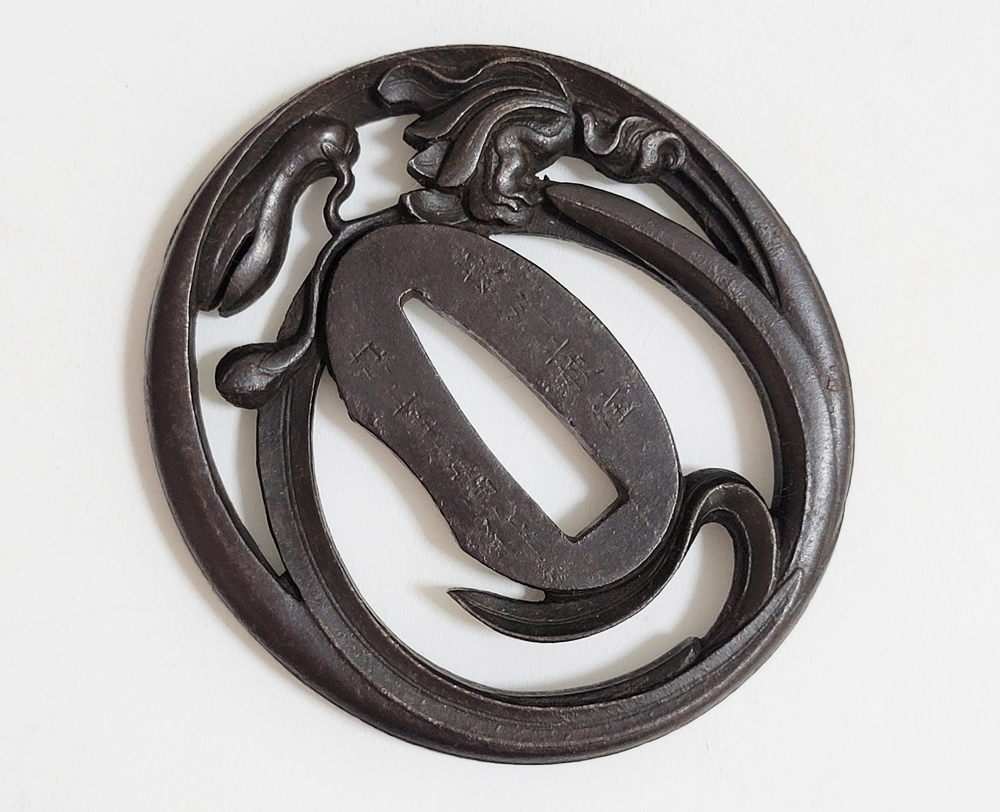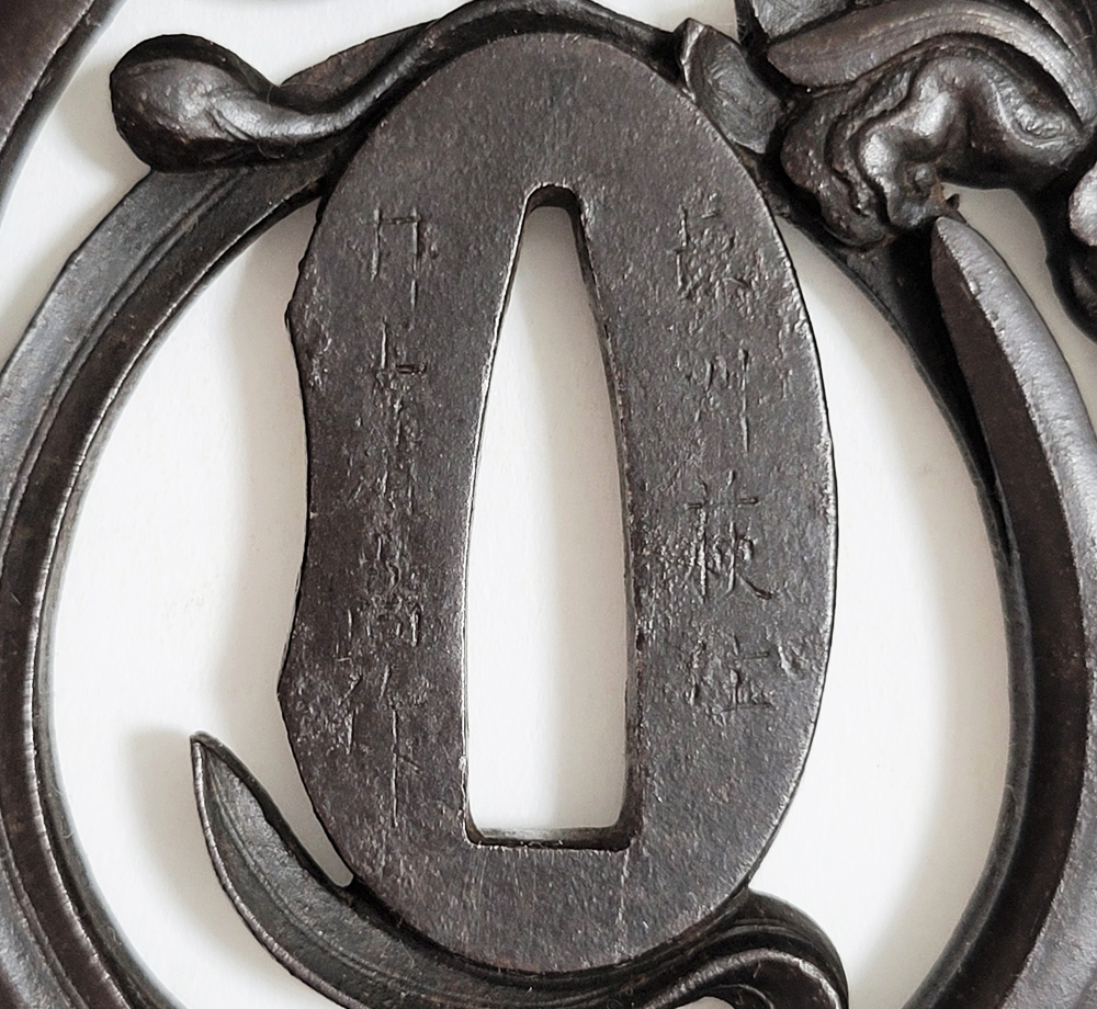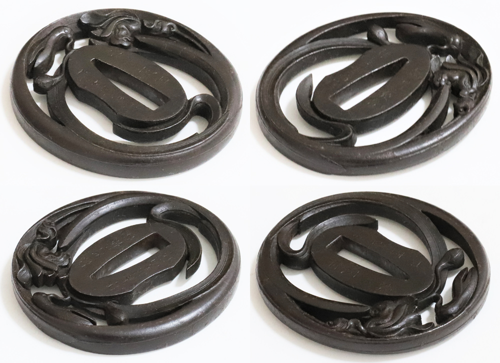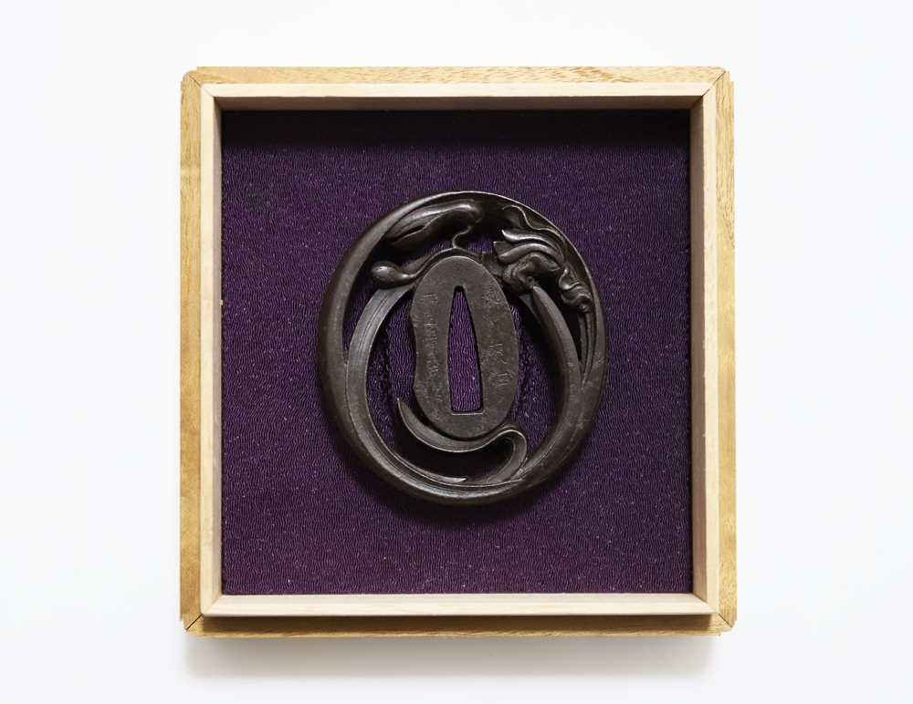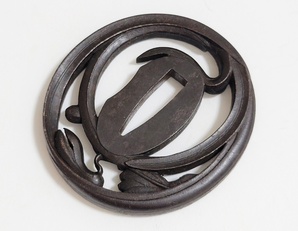 | Orchids are a favorite subject of literati, and along with plum, bamboo, and chrysanthemum, they are called as four noble flowers because of their beauty and elegance. The design of this tsuba is a popular, which depicts orchids with relief engraving and opework techniques. The artist, Inoue Kiyotaka [井上清高], is the first head of the Inoue family. He became a metal artisan for the Choshu domain in 1790. This is a sophisticated tsuba. It passed the Hozon Tosogu shinsa in 2024. |