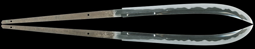 対馬守藤原貞重は尾張名古屋住、大阪にても造る。越中守貞幸門。良き業物刀工。本作は同工によるめずらしい薙刀作。焼幅広く健全で出来が良い。2020年6月審査で特別保存刀剣合格。