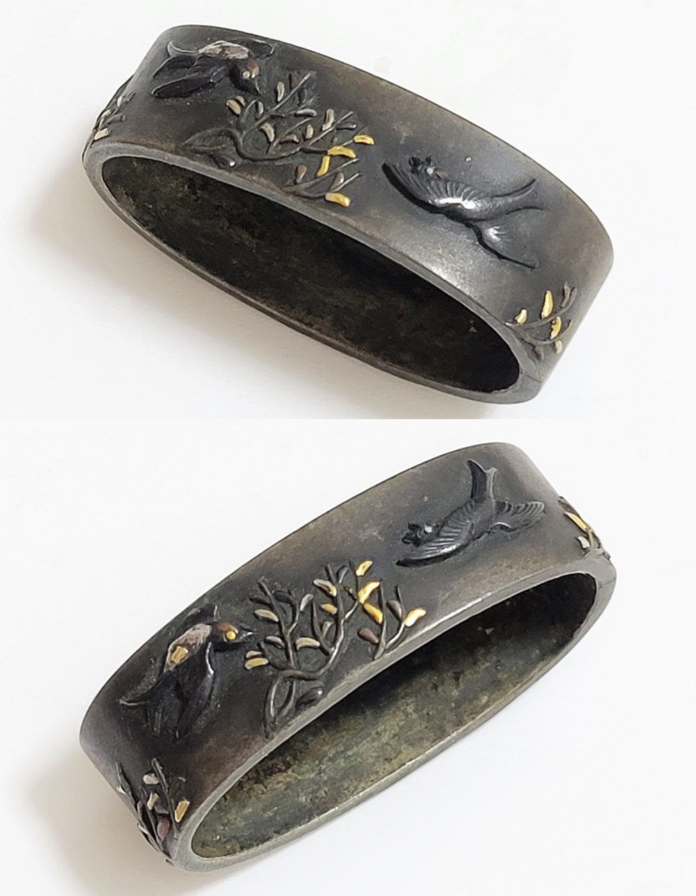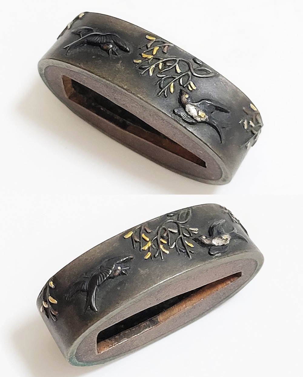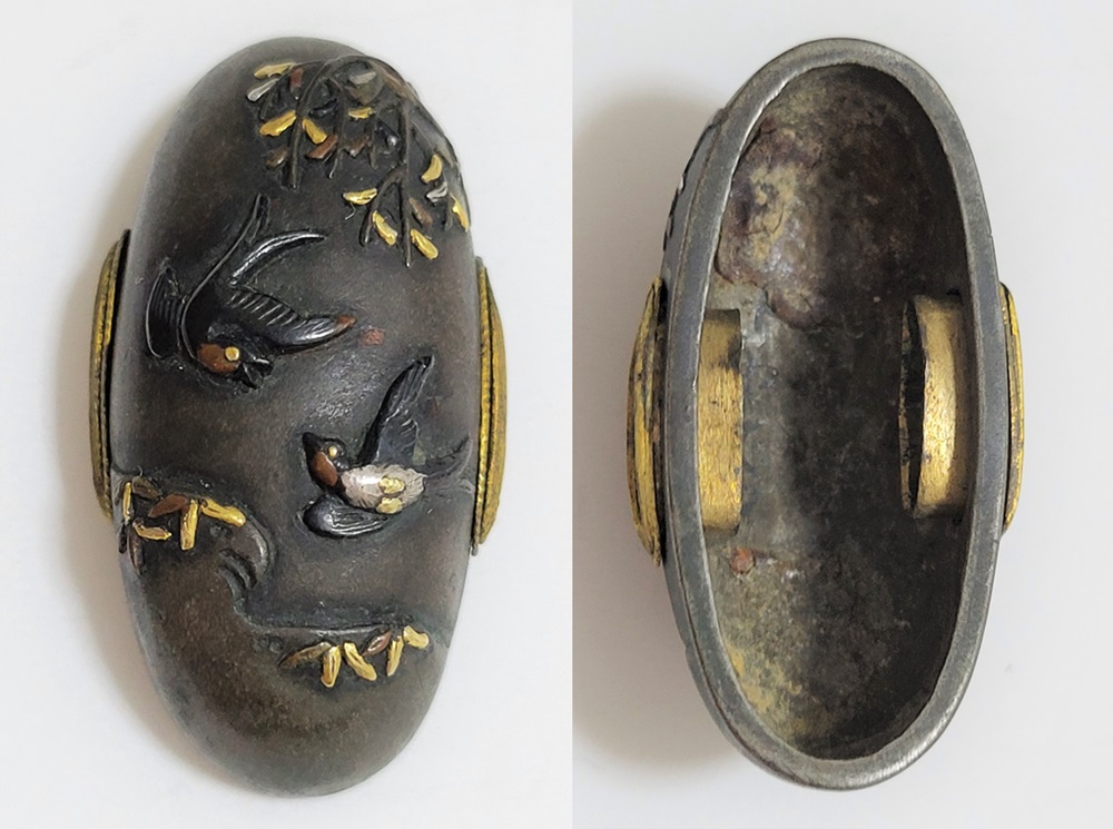 柳は春の訪れを告げ古くから愛され日本の風景や文化に深く根付いた植物。燕は農作物を生育する3月中旬ごろから南方より日本に渡って来る夏鳥。害虫を沢山食べることから人にとって益鳥とされ、燕が巣を作ることでその年は豊作になると言われ、商売繁盛や幸運の象徴として大切にされた。本作は柳の傍を飛行する番の燕図。初夏の情景をあらわす図。