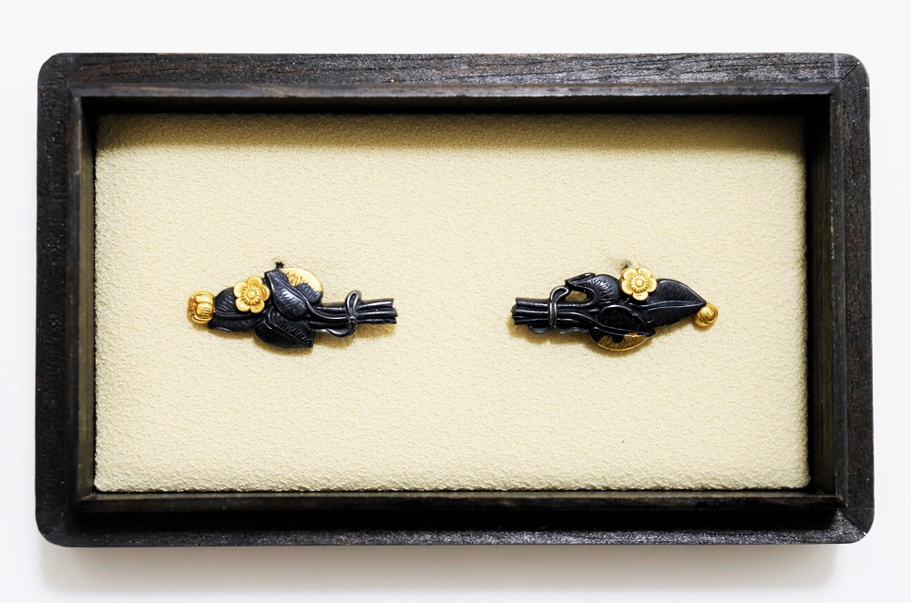 | 材質 | 赤銅地 容彫 金色絵 |