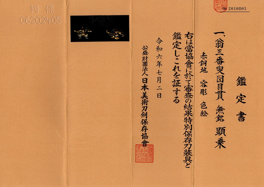 | 鑑定書 | 特別保存刀装具 |