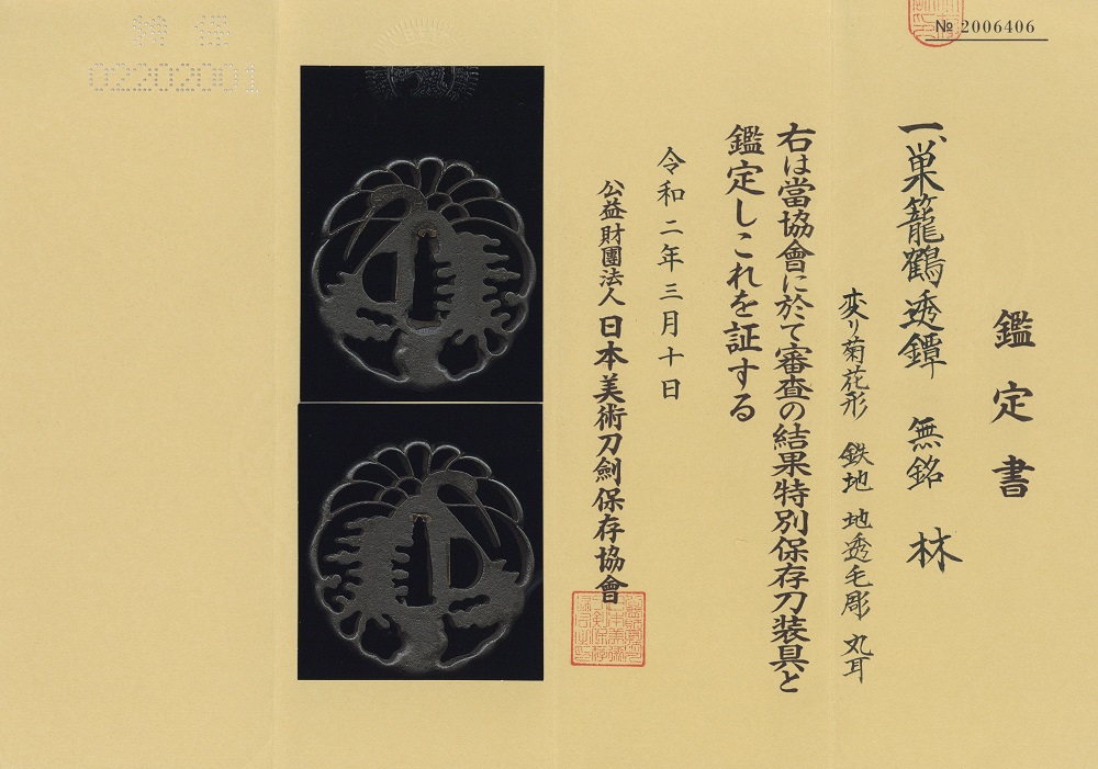 | 鑑定書 | 特別保存刀装具 |