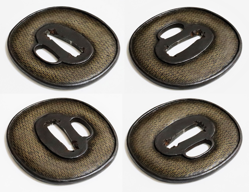 | 材質 | 鉄地 竪丸形 鋤下彫 象嵌 鋤残耳 |