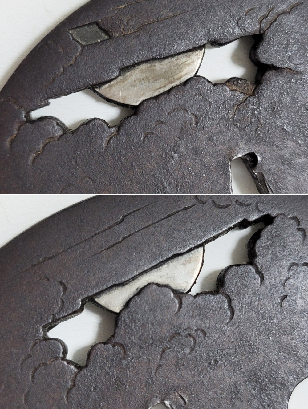 | 材質 | 鉄磨地 竪丸形 鋤下彫 小透象嵌色絵 角耳小肉 |