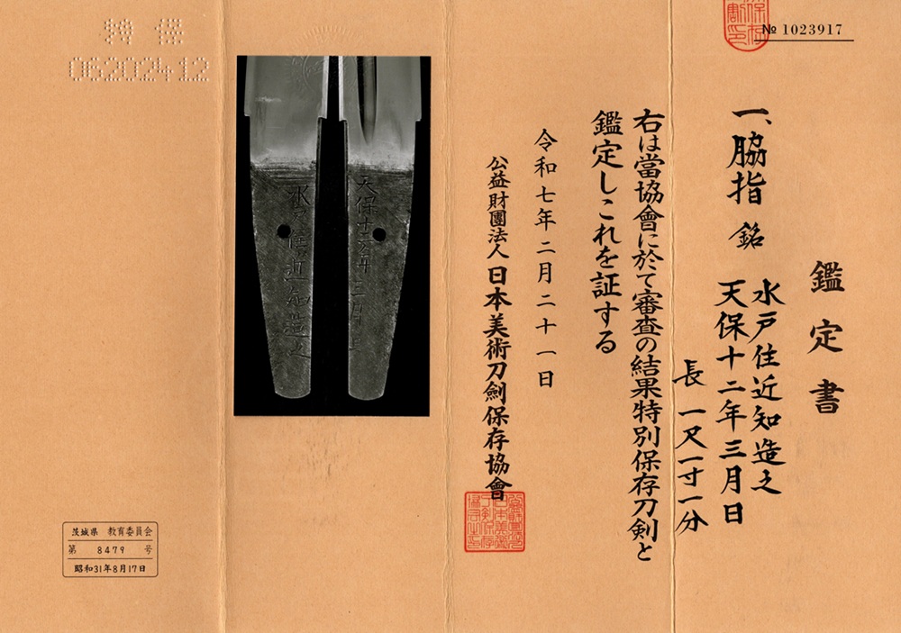 | 鑑定書 | 特別保存刀剣 |