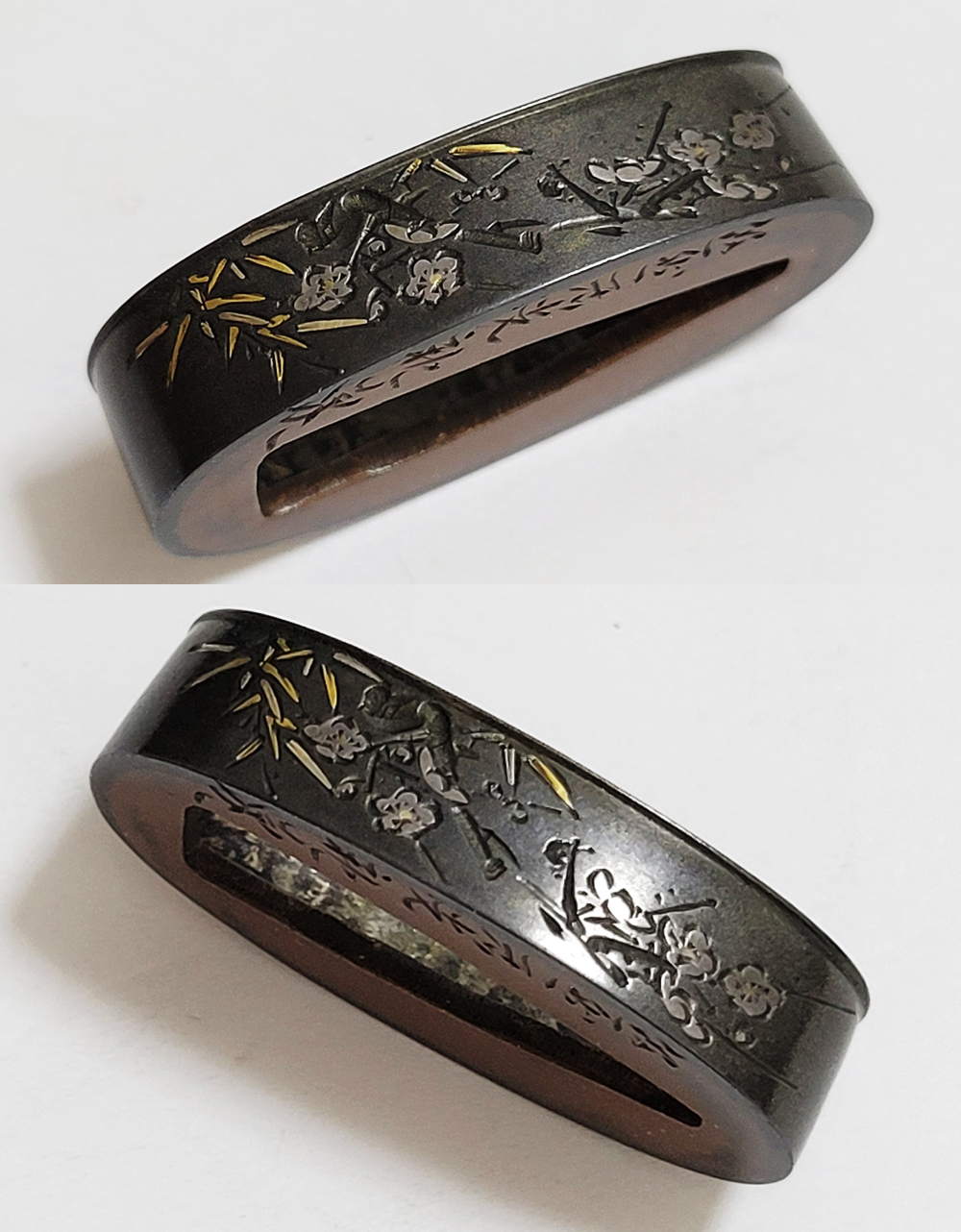 | 材質 | 四分一磨地 鋤毛彫 金銀平象嵌 |