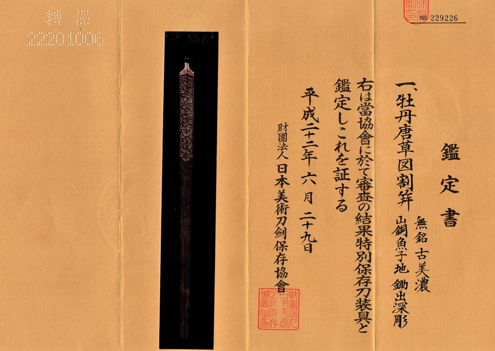 | 鑑定書 | 特別保存刀装具 |