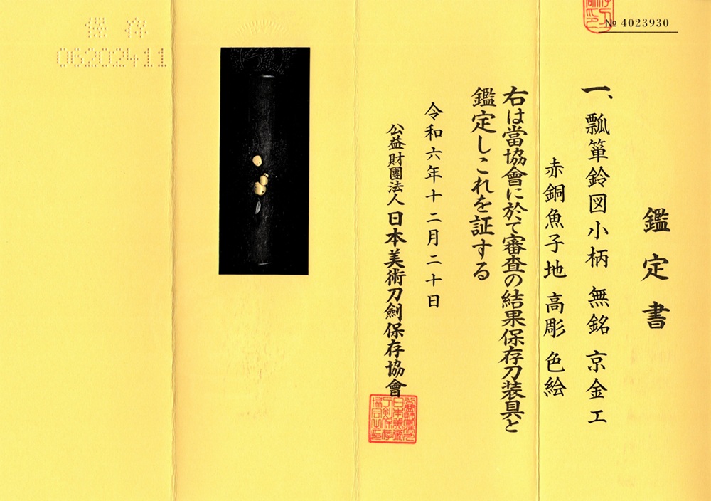 | 鑑定書 | 保存刀装具 |