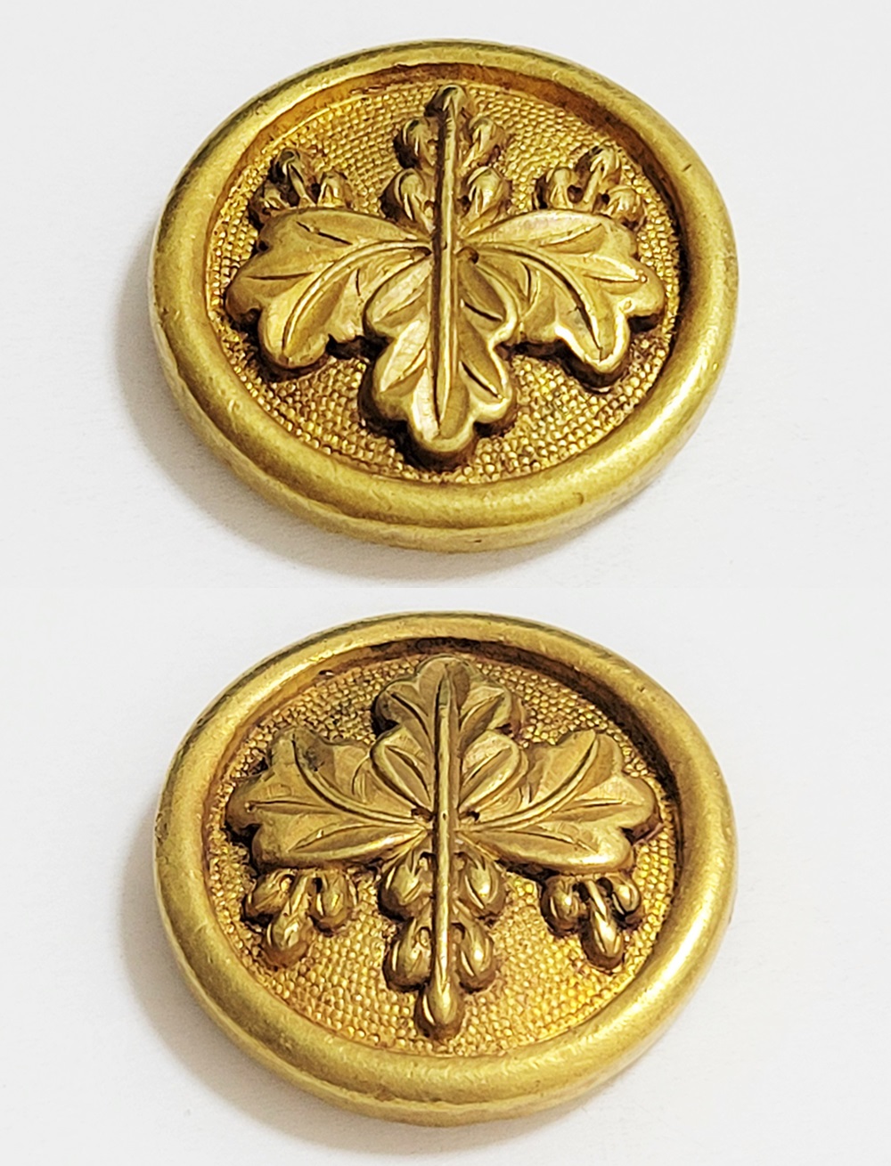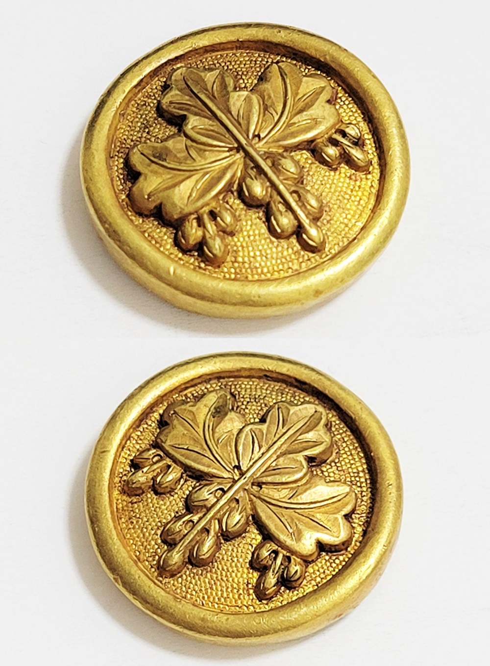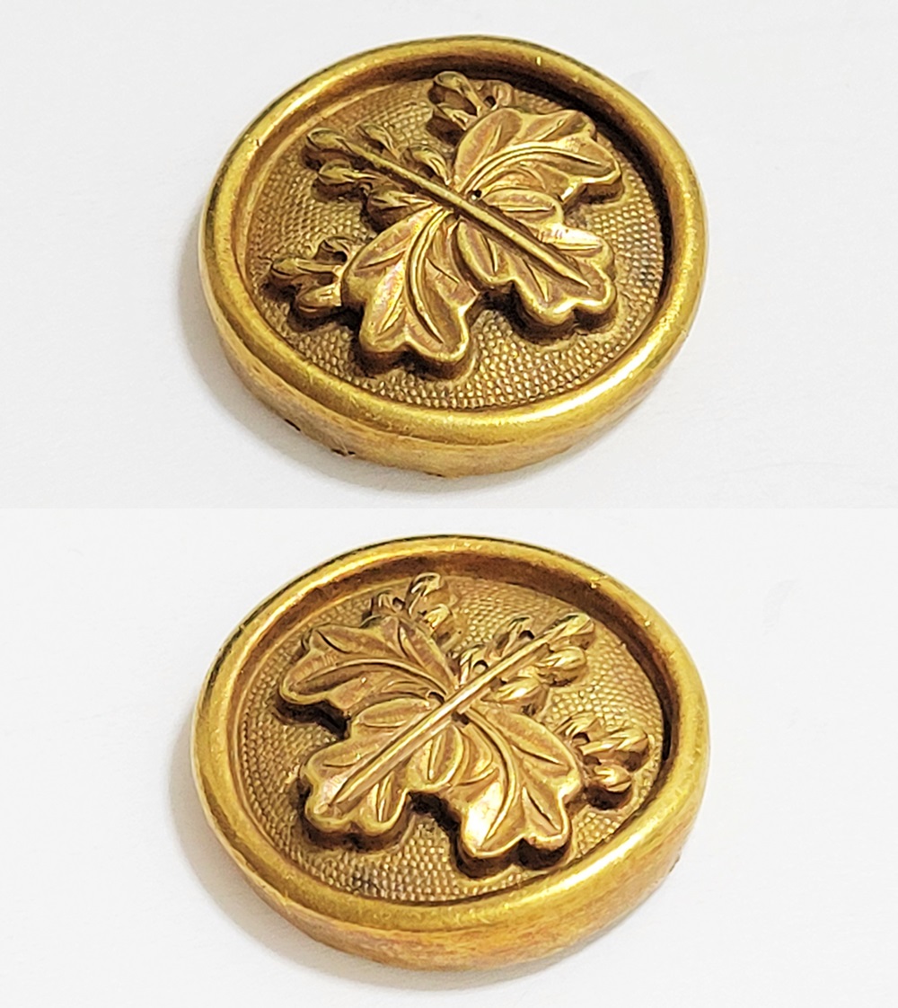 | 栄乗(後藤宗家六代)に極められた金無垢魚子地の五三桐紋図壺傘目貫。栄乗は徳乗(宗家五代)の長男で天正五年(1577)生。文禄三年(1594)に家督を相続。元和三年(1613)41歳没。京都住。自身銘は少なく遺作の多くは後代宗家の極めによる。作風は後藤家の典型的な作で、彫法古風にして大振り、紋高く三代乗真に似る。本作は魚子地に鋤出彫で五三桐紋をあらわす。麦鏨が入った大振りの壺傘金無垢目貫。2010年保存審査合格を2025年2月の刀装具審査で特別保存に昇格。 |