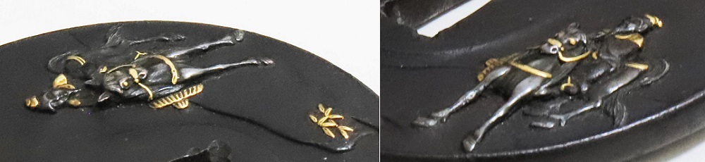 材質 鉄磨地 竪丸形 鋤出高彫 象嵌色絵 鋤残耳