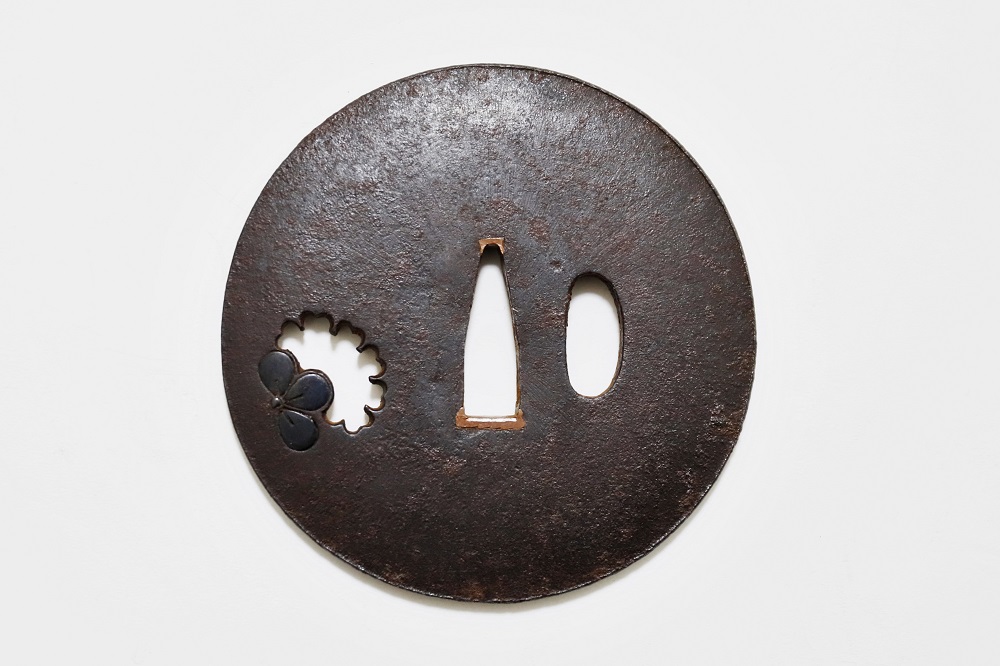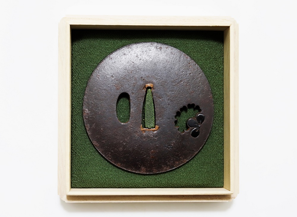 | 材質 | 鉄阿弥陀鑢地 丸形 陰透 嵌金 打返耳 |