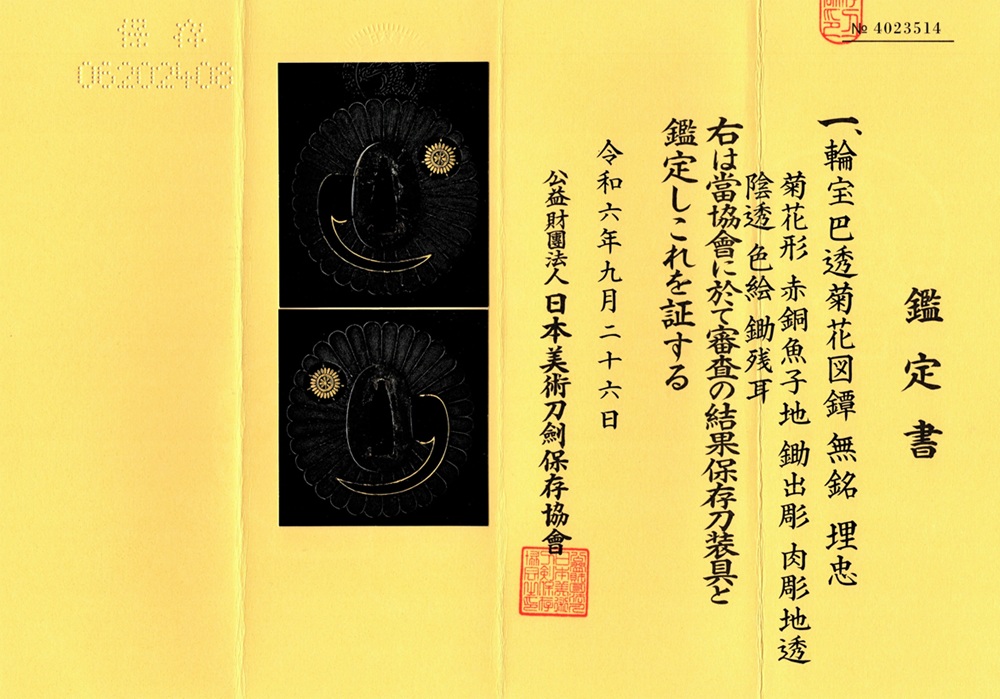 | 鑑定書 | 保存刀装具 |