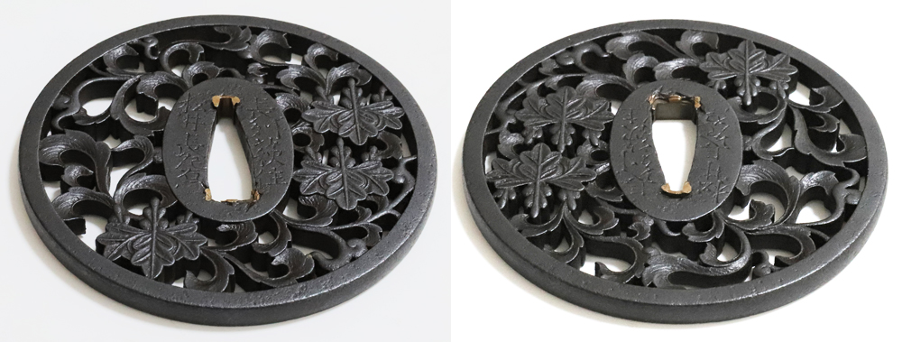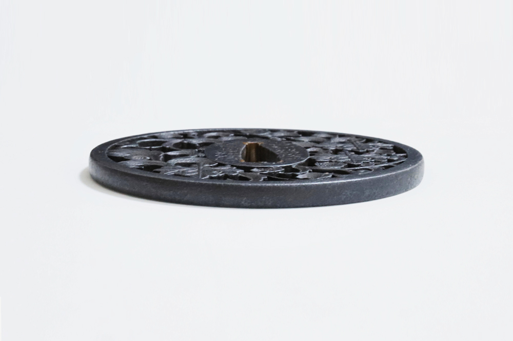 | 材質 | 鉄地 丸形 肉彫 地透 角耳小肉 無櫃孔 |