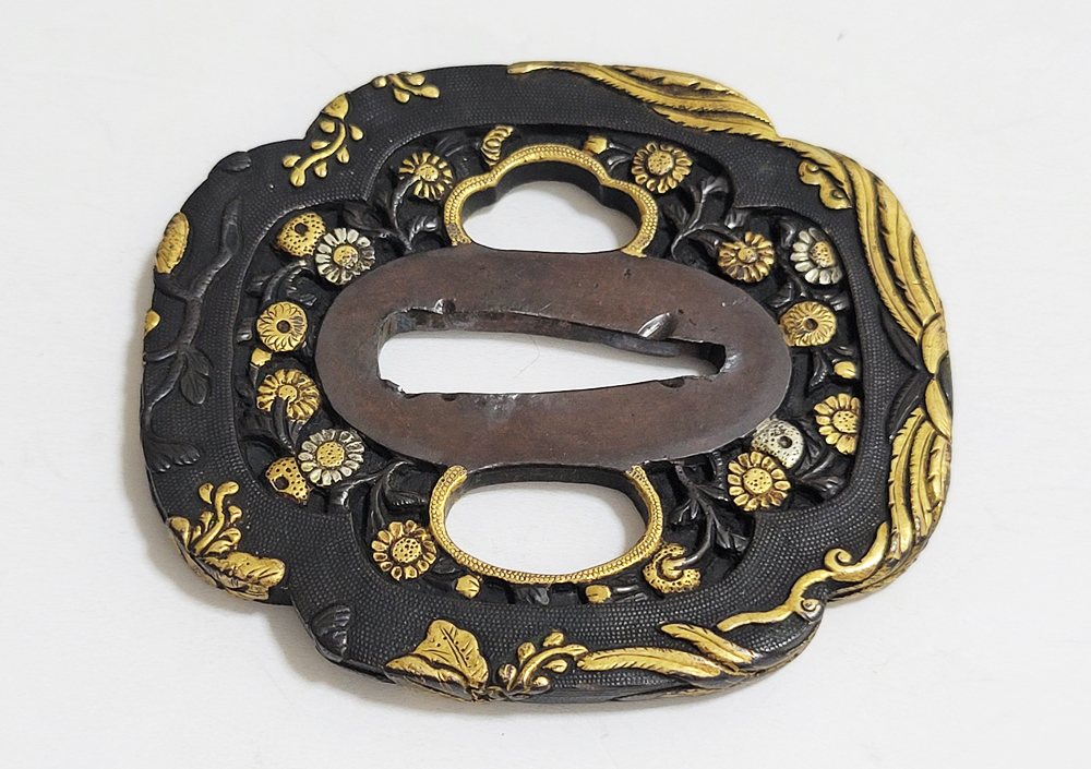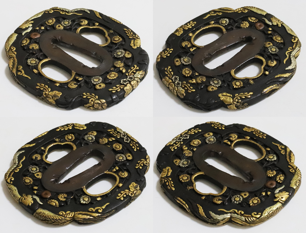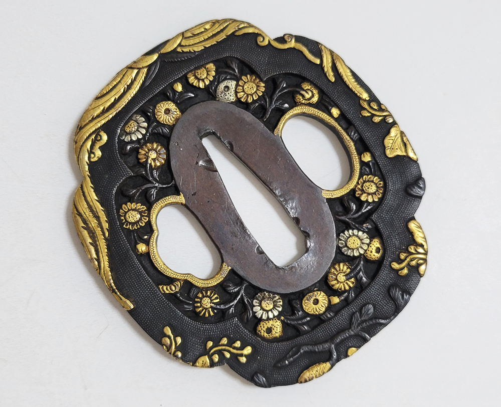 | 材質 | 赤銅魚子地 木瓜形 高鋤彫色絵 |